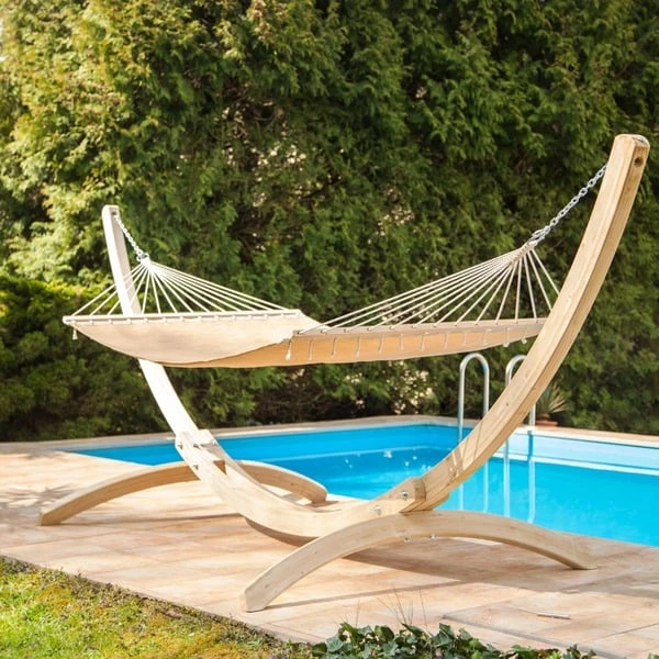Das wetterfeste Olymp Gestell von Amazonas eignet sich für besonders große Hängematten und besteht aus europäischem Fichtenholz. Durch eine Tauchbadimprägnierung und verzinkte Beschläge ist das Holz wetterfest gemacht und auf eine lange Nutzung ausgelegt. Die maximale Belastung liegt bei 200 kg.Art.-Nr.: 1399070