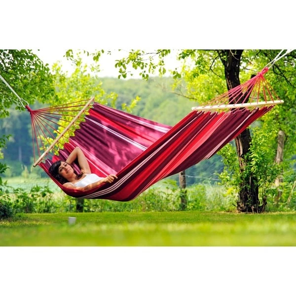 Die aus wetterfestem und UV-beständigem EllTex-Material gefertige Hängematte mit Spreizstäben ist extra haltbar und gleichzeitig kuschelig weich wie Baumwolle.Art.-Nr.: 1398362