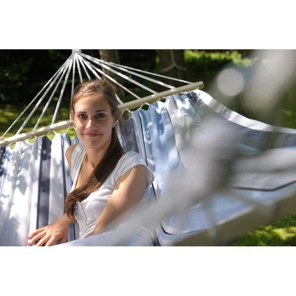 Die aus wetterfestem und UV-beständigem EllTex-Material gefertige Hängematte mit Spreizstäben ist extra haltbar und gleichzeitig kuschelig weich wie Baumwolle.Art.-Nr.: 1398298