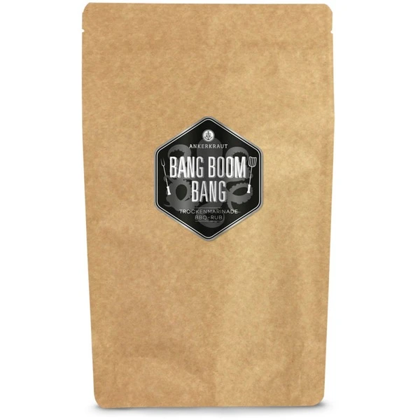 Es fehlt der gewisse Kick? Mit der „Bang Boom Bang“ Gewürzmischung heizt man den Geschmacksnerven ordentlich ein! Ankerkrauts feurig rotes BBQ Rub lässt nicht nur das Grillgut brutzeln. Einfach ein paar Tropfen Olivenöl ins Fleisch reiben, dann großzügig mit dem Rub bestreuen. Extra verschärft wird’s, wenn man das Rub ordentlich ins Fleisch einklopft oder massiert und es dann 12 bis 18 Stunden im Kühlschrank einziehen lässt. Saugut zu Schweine- oder Geflügelfleisch. Wer gar nicht mehr genug bekommt, darf aber auch das Grillgemüse aufpeppen oder mal Schafskäse schärfetechnisch auf die Sprünge helfen. Der Knaller auf jeder Grillparty für echte Kerle!Art.-Nr.: 1546800