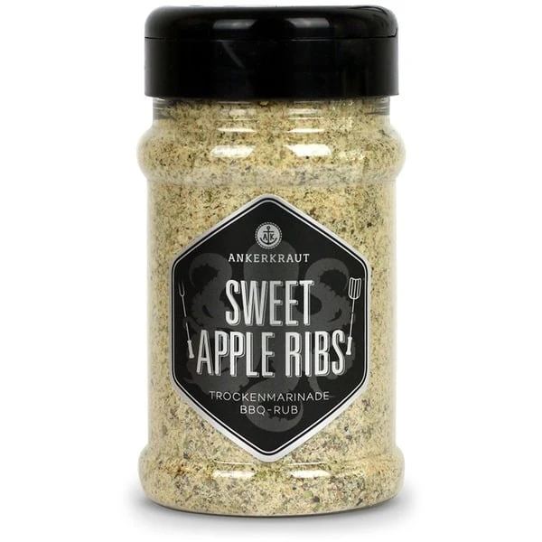 Wenn man meint schon alles probiert zu haben, dann wird es Zeit für Ribs mit Ankerkrauts Sweet Apple BBQ Rub zu verfeinern. Der hohe Anteil an Apfelpulver sorgt für eine frisch-herbe und leicht süße Geschmacksnote, die die nächsten Ribs unvergesslich werden lassen. Für das perfekte Raucharoma sorgen Apfelholzchunks, andere milde Holzarten wie Buche oder Kirsche gehen aber auch. Meersalz, Rohrzucker, Senf, Knoblauch und Zwiebel runden das Rub perfekt ab und bringen die nötige Würze. Perfekt kombiniert ist dieses BBQ Rub übrigens mit Apfelessig, Apfelmus, Apfelsaft oder Apfelchutney, sehr zu empfehlen.Art.-Nr.: 1553117