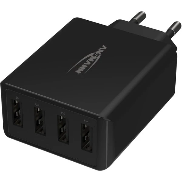 Der Home Charger HC430 von Ansmann bietet intelligente Ladesteuerung und Multisafe-Technologie für bis zu vier Geräte. Dieses Ladegerät mit vier USB-Anschlüssen lädt mit bis zu 30 Watt Smartphones, Tablets oder andere USB-Geräte.Art.-Nr.: 1847003
