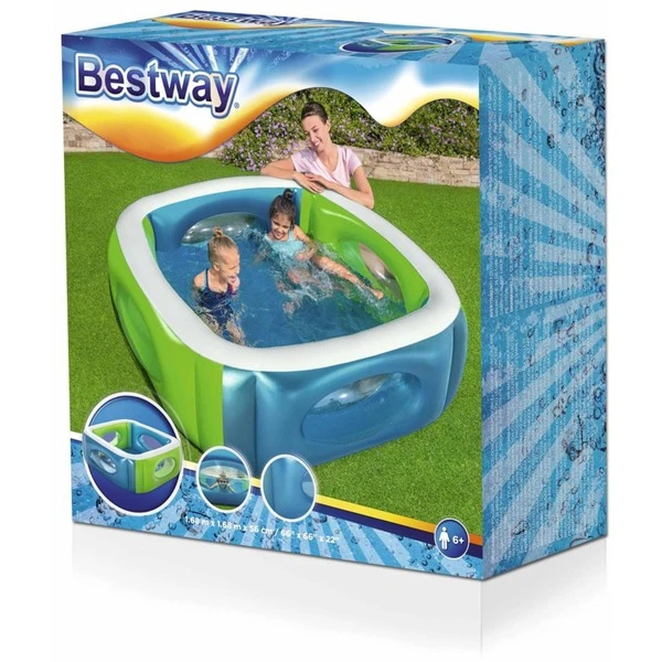 Das Planschbecken „Windows“ 51132 von Bestway ist ein kleiner viereckiger Pool mit Sicherheitsventilen. Er fasst 565 Liter Wasser und besteht aus robustem, vorgetestetem Vinyl. Die stabile Konstruktion ist mit vier transparenten Seitenfenstern ausgestattet.Art.-Nr.: 1619497