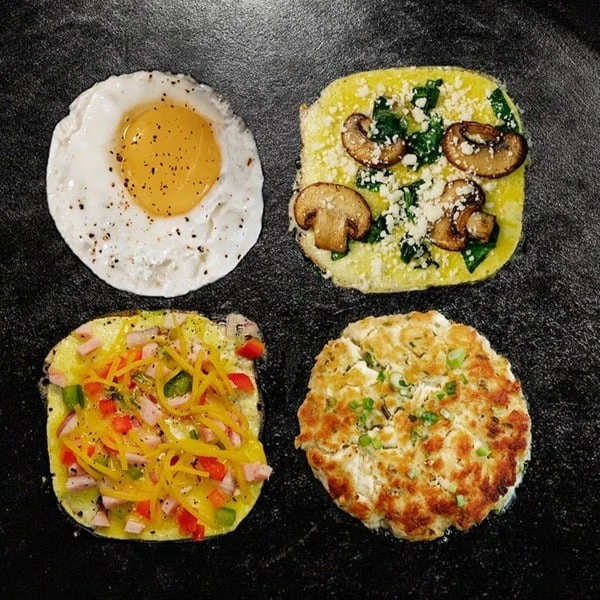 Mit den Egg Rings von Blackstone sehen Omeletts und Spiegeleier aus, als wären sie von einem Profi-Koch in einem Café zubereitet worden. Das Egg Ring Bundle enthält acht Eierringe, vier kreisförmige und vier quadratische. Die Eierringe lassen sich als Form für Omeletts, Pfannkuchen, Rösti und vieles mehr verwenden. Die Egg Rings sind aus Silikon gefertigt und spülmaschinenfest.Art.-Nr.: 100101980
