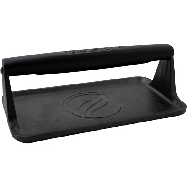Die Burgerpresse von Blackstone aus robustem, schwerem Gusseisen verleiht dem Grillen eine ganz neue Dimension. Damit können Hamburger perfekt gepresst und Paninis, Steaks, Bacon oder Sandwiches für köstliche Mahlzeiten gegrillt werden. Die Presse erreicht eine gleichmäßige Wärmeverteilung und bewahrt den saftigen Geschmack der Speisen. Die Fähigkeit von Gusseisen, Wärme zu speichern, sorgt für die perfekte Grillfläche und einen köstlichen Geschmack bei jedem Bissen. Der hitzebeständige Griff schützt die Hände. Die Grillpresse von Blackstone ist ein hochwertiges Werkzeug mit robuster Konstruktion und langlebigen Materialien, das lange Zeit Freude bereiten wird.Art.-Nr.: 100103593