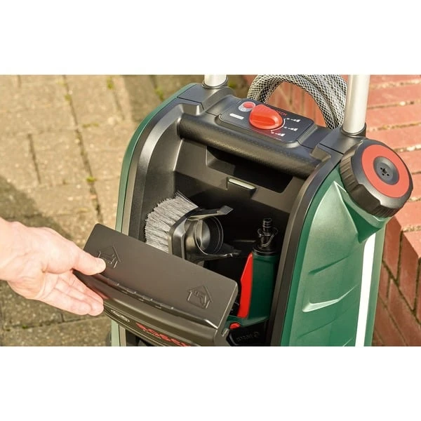 | Feature | Teleskop-Griff, robuste Räder, Druckeinstellungen Niedrig, Mittel und Turbo, einfache Schnellkupplungen | ||