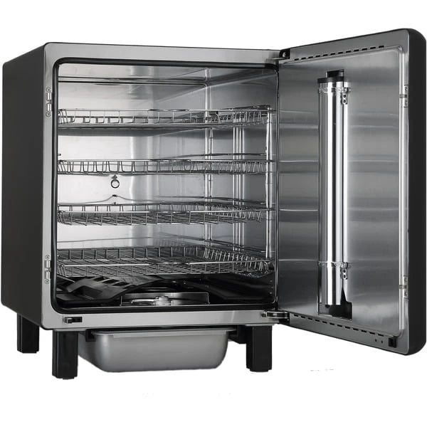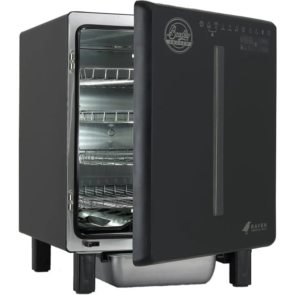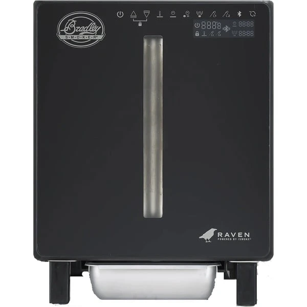 Der Bradley Raven Food Smoker ist ein benutzerfreundlicher, Bluetooth-gesteuerter Räucherofen, mit dem köstliche Mahlzeiten einfacher denn je zubereitet werden können. Der Bradley Raven ist vollelektrisch und damit perfekt für Outdoor-Köche, die etwas Vielseitiges und Anpassbares zum Räuchern und Garen von Lebensmitteln suchen. In der Tür aus gehärtetem Glas ist die digitale Touch-Steuerung integriert. Temperatur, Zeit und Rauch sind alle auch vollständig über Bluetooth über die Bradley iSmoke-App steuerbar, einfach einzurichten und von überall aus zu verwalten. Der Bradley Raven Food Smoker ermöglicht eine präzise Kontrolle der Hitze und hält die eingestellte Temperatur den ganzen Tag über, mit weniger als 2% Abweichung. Die Aromaholz-Bisquetten werden kontrolliert verbrannt, damit die Temperatur nicht schwankt. Dadurch werden Hochtemperaturgase, Säuren und Harze vermieden, die den Geschmack der geräucherten Lebensmittel beeinträchtigen könnten. Der Bradley Smoker erzeugt schmackhafte Gerichte ohne störenden Nachgeschmack. Zu den beeindruckenden Funktionen gehören ein vereinfachtes Bisquette-Zufuhrsystem, eine einstellbare Rauchintensität, zwei Fleischsonden mit individuellen Sollwertreglern und eine pulverbeschichtete Außenseite für lang anhaltende Attraktivität.Art.-Nr.: 100110373