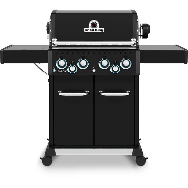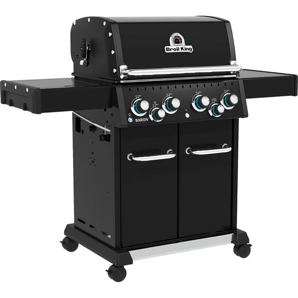 Der Gasgrill Baron 490 IR Shadow von Broil King bietet außergewöhnliche Funktionen und eine unübertroffene Leistung. Der hochwertige, rostbeständige Therma-Cast-Kessel speichert die Wärme perfekt. Der modern gestaltete Grill besitzt vier Rohrbrenner, einen 3,1 kW Infrarot-Seitenbrenner zum scharfen Anbraten und einen 4,4 kW Spießbraten-Heckbrenner. Die extrem leistungsstarken Rohr-in-Rohr Dual Tube Edelstahl-Hauptbrenner haben seitliche Brenneröffnungen und liefern doppelte Flammreihen, was die Hitze besonders gleichmäßig verteilt. Die massiven, matt-emaillierten Flav-R-Cast Gussroste bieten eine exzellente Hitzespeicherung zum scharfen Anbraten. Das Flav-R-Wave Verdampfungssystem aus Edelstahl sorgt für eine gleichmäßige Hitzeverteilung und vaporisiert Marinaden und Fleischsäfte, für ein Maximum an Grillgeschmack. Im geräumigen Wagen mit zwei Türen findet nicht nur die 11kg Propangasflasche einen Platz. Dank der elektronischen Zündung lässt sich der Grill schnell und einfach starten. Der schwarze Baron 490 IR Shadow lässt sich mit den vier leichtgängigen Lenkrollen sicher zum Einsatzort manövrieren.Art.-Nr.: 100134556