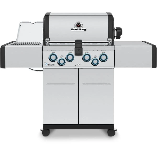 Der Gasgrill Regal S 490 IR von Broil King bietet außergewöhnliche Funktionen und eine unübertroffene Leistung. Der hochwertige, rostbeständige Therma-Cast-Kessel speichert die Wärme perfekt. Der modern gestaltete Grill besitzt vier Rohrbrenner, einen 3,1 kW Infrarot-Seitenbrenner zum scharfen Anbraten und einen 4,4 kW Spießbraten-Heckbrenner. Die extrem leistungsstarken Rohr-in-Rohr Dual Tube Edelstahl-Hauptbrenner haben seitliche Brenneröffnungen und liefern doppelte Flammreihen, was die Hitze besonders gleichmäßig verteilt. Dank der elektronischen Zündung lässt sich der Grill schnell und einfach starten. Die massiven, matt-emaillierten Flav-R-Cast Gussroste bieten eine exzellente Hitzespeicherung zum scharfen Anbraten. Das Flav-R-Wave Verdampfungssystem aus Edelstahl sorgt für eine gleichmäßige Hitzeverteilung und vaporisiert Marinaden und Fleischsäfte, für ein Maximum an Grillgeschmack. Im geräumigen Wagen mit zwei Türen findet die 11kg Propangasflasche auf einer herausziehbaren Halterung ihren Platz. Der in Edelstahl gehaltene Regal S 490 IR ist außerdem mit dem Deluxe Accu-temp Thermometer im Deckel, einem abnehmbaren Grifflicht und zwei Ablagefächern in den Seitenablagen ausgestattet. Er lässt sich mit den vier leichtgängigen Lenkrollen sicher zum Einsatzort manövrieren und mit den beiden höhenverstellbaren Rollen exakt waagerecht ausrichten.Art.-Nr.: 100138434
