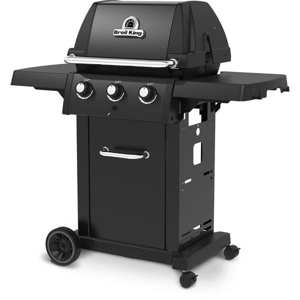 Der Gasgrill Royal 320 Shadow von Broil King bietet außergewöhnliche Funktionen und eine unübertroffene Leistung. Der modern gestaltete Grill besitzt ein rostfreies Grillgehäuse aus Aluminiumguss, drei Rohrbrenner und präzise Ventile. Die extrem leistungsstarken Rohr-in-Rohr Dual Tube Edelstahl-Brenner haben seitliche Brenneröffnungen und liefern doppelte Flammreihen, was die Hitze besonders gleichmäßig verteilt. Die massiven, matt-emaillierten Flav-R-Cast Gussroste bieten eine exzellente Hitzespeicherung zum scharfen Anbraten. Das Flav-R-Wave Verdampfungssystem aus Edelstahl sorgt für eine gleichmäßige Hitzeverteilung und vaporisiert Marinaden und Fleischsäfte, für ein Maximum an Grillgeschmack. Die haltbaren, abklappbaren Seitenablagen eignen sich perfekt für begrenzte Platzverhältnisse, und im Stahlwagen findet die 11kg Propangasflasche einen Platz. Dank der elektronischen Zündung lässt sich der Grill schnell und einfach starten. Der stilvolle Royal 320 Shadow lässt sich mit den großen Rädern und leichtgängigen Lenkrollen sicher zum Einsatzort manövrieren.Art.-Nr.: 100134583