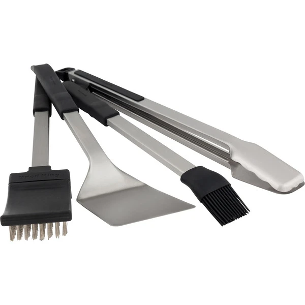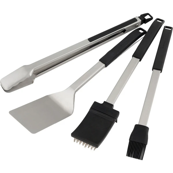 Das 4-teilige Grillbesteck-Set Baron 64003 von Broil King besteht aus einem Wender, einer verschließbaren Grillzange, einem Silikonpinsel und einer Reinigungsbürste. Das Grillbesteck-Set Baron ist aus Edelstahl gefertigt und mit Kunststoffgriffen versehen. Mit den Aufhängeösen können die praktischen Helfer griffbereit an den Besteckhaken direkt am Grill aufbewahrt werden.Art.-Nr.: 100138777