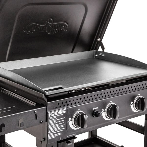 Der Flat Iron 3-Brenner Gas Griddle von Char-Griller bietet auf der massiven Grillplatte aus Stahl die Möglichkeit, alle Lieblingsspeisen, von Burgern bis zum Frühstück, anzubraten und zu sautieren. Auf den drei Temperaturkochzonen können verschiedene Lebensmittel bei unterschiedlichen Temperaturen zubereitet werden. Vom Toasten von Brot bei niedriger Hitze bis zum Anbraten eines brutzelnden Steaks bei hoher Hitze, mit mehreren Kochzonen ist alles gleichzeitig möglich. Der Flat Iron 3-Brenner Gas Griddle verfügt über drei einzeln regelbare Brenner mit leistungsstarken 10,5 kW und einen integrierten Windschutz, damit die gewünschte Grilltemperatur beibehalten wird, ohne dass Hitze verloren geht. Die elektronische Zündung, einfach zu bedienende Brenner-Drehknöpfe und eine von vorne herausnehmbare Fettauffangschale sorgen für ein entspanntes und angenehmes Grillerlebnis. Eine klappbare Seitenablage mit zusätzlicher Fläche zum Ablegen und Zubereiten, drei Besteckhaken und zwei Öffnungen zum Einhängen von Spatel und Wender bieten viel Platz für Grillutensilien. Im Untergestell befindet sich ein weiteres Ablagefach. Nach dem Grillen ist der Flat Iron 3-Brenner Gas Griddle zur einfachen Aufbewahrung zusammenklappbar, und er verfügt über einen seitlichen Griff zum einfachen Ziehen oder Tragen.Art.-Nr.: 100102107