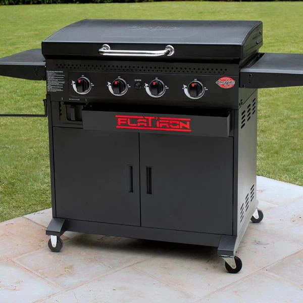 Der Flat Iron 4-Brenner Gas Griddle von Char-Griller bietet auf der massiven Grillplatte aus Stahl die Möglichkeit, alle Lieblingsspeisen, von Burgern bis zum Frühstück, anzubraten und zu sautieren. Auf den vier Temperaturkochzonen können verschiedene Lebensmittel bei unterschiedlichen Temperaturen zubereitet werden. Vom Toasten von Brot bei niedriger Hitze bis zum Anbraten eines brutzelnden Steaks bei hoher Hitze, mit mehreren Kochzonen ist alles gleichzeitig möglich. Die Grillfläche von 5.000cm² bietet Platz für 45 Eier oder 32 Burger. Der Flat Iron 4-Brenner Gas Griddle verfügt über vier einzeln regelbare Brenner mit leistungsstarken 16 kW und einen integrierten Windschutz, damit die gewünschte Grilltemperatur beibehalten wird, ohne dass Hitze verloren geht. Die elektronische Zündung, einfach zu bedienende Brenner-Drehknöpfe und eine von vorne herausnehmbare Fettauffangschale sorgen für ein entspanntes und angenehmes Grillerlebnis. Zwei klappbare Seitenablagen mit zusätzlicher Fläche zum Ablegen und Zubereiten und drei Besteckhaken bieten viel Platz für Grillutensilien. Im Unterschrank mit Türen gibt es Stauraum für die Gasflasche und weiteres Zubehör. Nach dem Grillen ist der Flat Iron 4-Brenner Gas Griddle mit den vier Rollen und den runterklappbaren Seitentischen leicht zu verstauen.Art.-Nr.: 100102097