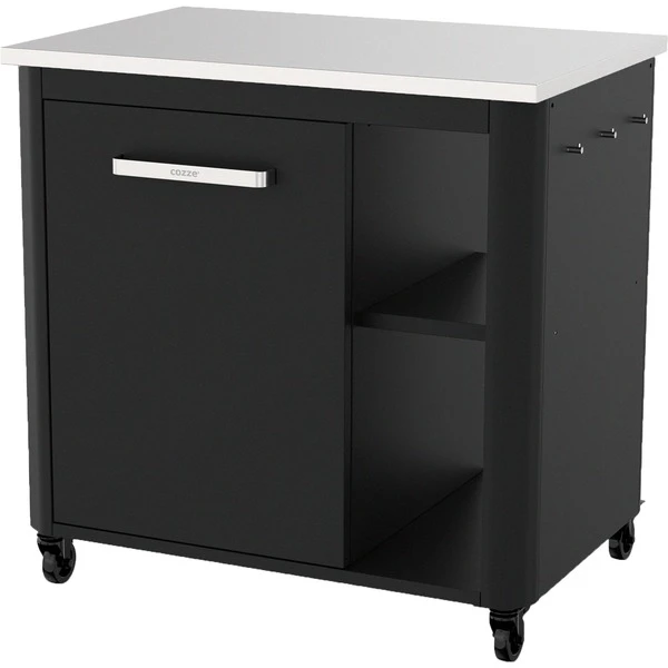 Der Cozze-Außenschrank 90527 verschönert das Grill- und Kocherlebnis im Freien. Dieser vielseitige Arbeitstisch mit Edelstahl-Platte lässt sich problemlos mit anderen Cozze-Außentischen und -schränken aus dem Sortiment kombinieren oder erweitern. Er ist mit vier verzinkten, schwarz pulverbeschichteten Schwerlasträdern Ø 75mm ausgestattet, und bietet Platz zur Aufbewahrung der Gasflasche.Art.-Nr.: 100047414