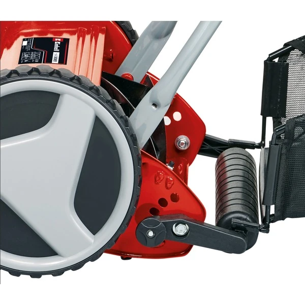 Der Hand-Rasenmäher GC-HM 400 von Einhell ist ein robuster funktionaler Spindelmäher ohne motorischen Antrieb, der sich ideal für kleinere Rasenflächen eignet. Er mäht sauber, leise, absolut umweltfreundlich und unabhängig vom Stromnetz. Das Gerät verfügt über eine leichtgängige, kugelgelagerte Mähspindel mit fünf hochwertigen Stahlmessern und ermöglicht dank vierstufiger Schnitthöhenverstellung eine exakte Einstellung der gewünschten Schnitthöhe. Der GC-HM 400 verfügt über eine robuste langlebige Kunststoff-Laufwalze und ist mit großflächigen, rasenschonenden Rädern ausgestattet. Der abnehmbare Grasfangkorb fasst ca. 27 Liter und lässt sich einfach entleeren. Die Parkposition ermöglicht ein sicheres und platzsparendes Verstauen des Mähers nach der Arbeit. Der GC-HM 400 wird für Rasenflächen bis 250m² empfohlen.Art.-Nr.: 1716371