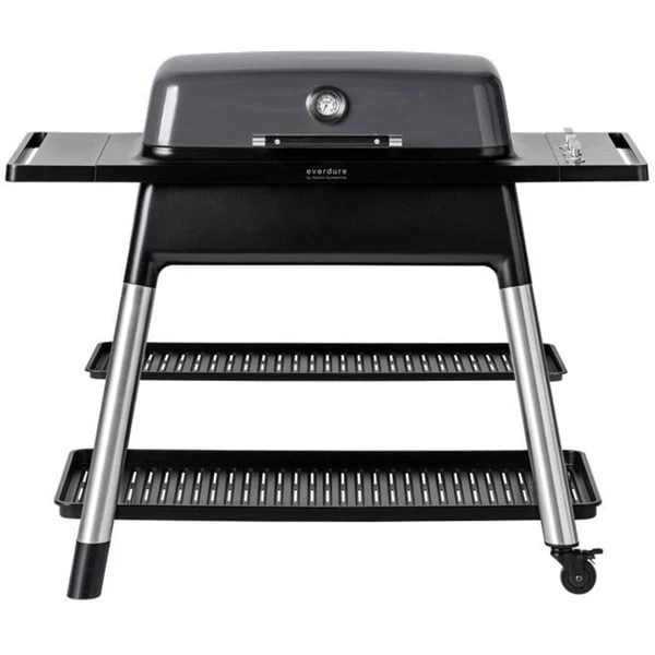 Die Everdure by Heston Blumenthal Grills kombinieren neuste Technologien und ästhetisches Design in ihrer schönsten Form. Das kompakte Modell FURNACE bietet nicht nur technische Vorzüge, sondern ist auch ein Design-Objekt im Garten oder auf der Terrasse. Das nahtlose, fließende Design wird durch eine Auswahl moderner Farben abgerundet. Der Everdure FURNACE ist ganz einfach in der Bedienung und schnell einsatzbereit. Sowohl die Höhe als auch die bis zu 10mm starken Wände des Aluminium-Deckels eignen sich perfekt zum indirekten Grillen. Der massive Deckel speichert die enorme Hitze im Inneren des Garraums. Die Formgebung der hohen Haube, in Verbindung mit der aufsteigenden Hitze, begünstigt die 360° Luftzirkulation im Garraum. Das Grillgut bleibt saftig und liefert wundervolle Aromen. So meistern auch ambitionierte Hobby-Griller spielend die hohe Kunst des indirekten Grillens. Die 3-teiligen Grillroste lassen sich im Handrumdrehen gegen solide gusseiserne Grillplatten austauschen. So kann man den Aufbau des Grills ganz einfach an die Gerichte anpassen, die zubereitet werden sollen. Die Grillroste sind außerdem so konzipiert, dass sie ein Hochschlagen von Flammen weitestgehend vermeiden und die Brenner sauber halten. Die drei Hochleistungs-Gasbrenner im O-Design sind präzise steuerbar. Der Korpus und die beiden Seitenablagen (eine davon runterklappbar) sind aus rostfreiem Aluminium-Druckguss gefertigt, Deckel und Grillflächen sind zur leichten Reinigung emailliert. Der doppelte Gitter-Ablageboden des Everdure FURNACE schafft Platz für Zutaten und Grillzubehör. Die schräg positionierten Standbeine sorgen für besonders hohe Stabilität, sind aber zum Transportieren leicht abnehmbar.Art.-Nr.: 100041369