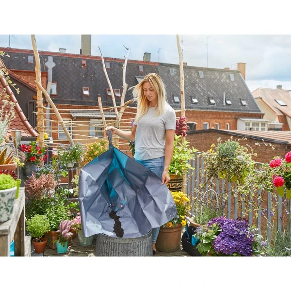 Die neuen GARDENA Pflanzmatten helfen dabei, dass es auf Balkon und Terrasse grünt und blüht, und beim Umtopfen alles sauber bleibt. Erde und Pflanzenteile, die danebenfallen, werden aufgefangen und können anschließend ganz leicht entsorgt werden. Die Kanten der Pflanzmatte L können auf Wunsch mit Druckknöpfen aufgestellt werden, dadurch entsteht ein Rand, und die Erde und Pflanzabfälle fallen nicht mehr auf den Tisch oder den Boden. Den Inhalt kann man anschließend einfach über dem Kompost oder dem Mülleimer entleeren, dazu befindet sich in der Mitte eine verschließbare Öffnung. Die city gardening Pflanzmatte L misst 120cm x 180cm und ist aus wasserabweisendem Material hergestellt. An den Ecken befinden sich praktische Tragegriffe. Sie lässt sich einfach reinigen, ist unempfindlich gegen Schmutz und weicht nicht auf. Bei der Variante L ist ein zusätzliches Kniekissen im Lieferumfang enthalten, für bequemes Arbeiten auf dem Boden.Art.-Nr.: 1491522