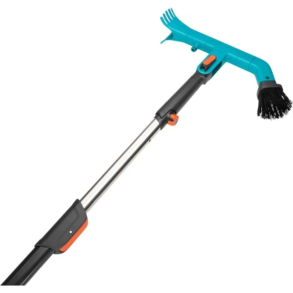 Der GARDENA combisystem-Dachrinnenreiniger (3651-30) eignet sich optimal zum Säubern und Ausräumen von Dachrinnen im Herbst. Zwei stabile Kunststoff-Schaber sorgen für die effiziente Entfernung von grobem Schmutz und Blättern, mit der Bürstenseite und angeschlossenem Gartenschlauch lassen sich anschließend auch letzte Schmutzreste gründlich abwaschen. Der Arbeitswinkel lässt sich individuell per Schnellverschluss einstellen. Der combisystem-Dachrinnenreiniger kann mit dem Handgriff auch ohne combisystem-Stiel eingesetzt werden. Art.-Nr.: 1394533