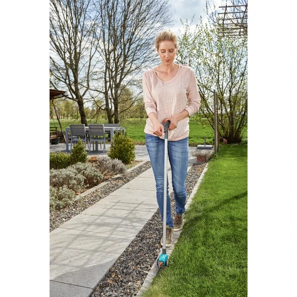 Die drehbare GARDENA Comfort Grasschere 12100-20 mit Stiel erlaubt einen exakten Rasenkantenschnitt in rückenschonender, aufrechter Körperhaltung. Darüber hinaus kann der Stiel dank des Stiel-Neigungswinkels für ergonomisches Arbeiten an jede Körpergröße angepasst werden. Dank der antihaftbeschichteten, reibungsoptimierten Schneidemesser und der selbstschärfenden Klinge wird stets kraftvolles Schneiden bei gleichbleibender Schnitthöhe ermöglicht. Große Laufräder sorgen für präzise Führung und ein angenehmes Schieben der Gartenschere. Unterstützt durch den ergonomischen Griff mit zusätzlicher Weichkunststoff-Komponente ist die Bedienung der drehbaren GARDENA Comfort Grasschere mit Stiel bequem und ohne Bücken möglich. Des Weiteren lassen sich die Schneiden für ein flexibles Arbeiten nach beiden Seiten bis 90° drehen. Durch einen praktischen Einhand-Sicherheitsverschluss kann die Comfort Grasschere schnell und einfach geschlossen werden.Art.-Nr.: 1394579