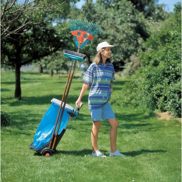 Das GARDENA Gartenmobil ist vielseitig einsetzbar, sowohl im Garten als auch im Haushalt. Es ermöglicht das bequeme und mobile Sammeln von Gartenabfällen, Unkraut, Rasenschnitt oder auch Müll. Große stabile Laufräder mit einem griffigen, aber rasenschonenden Spezialprofil machen das GARDENA Gartenmobil leichtgängig, während die solide Metallrahmen-Konstruktion eine maximale Belastung von 70 kg zulässt. Besonders praktisch ist der Deckel mit Doppelfunktion: zum einen schließt er sicher und schützt so vor Gerüchen nach außen und vor Nässe nach innen, zum anderen kann der Deckel auch als Kehrschaufel verwendet werden. Die Konstruktion aus rostfreien Materialien sorgt für eine lange Lebensdauer. Der Müllbeutel wird mit Clips an einer höhenverstellbaren Sackaufnahme befestigt und ist so in vielen Situationen leicht zu befüllen. Außerdem können auch zwei Säcke nebeneinander im GARDENA Gartenmobil befestigt werden was einen Einsatz mit Abfalltrennung ermöglicht. Darüber hinaus besitzt das Gartenmobil eine Aufnahmemöglichkeit für bis zu zwei Combisystem-Stiele und zwei kleinere Geräte wie beispielsweise Combisystem-Geräte, Handfeger, und ähnliches. Wird die Sackaufnahme abgenommen kann das GARDENA Gartenmobil auch als Sackkarre eingesetzt werden um größere Kisten wie beispielsweise für Obst oder Getränke zu transportieren. Währenddessen kann die Sackaufnahme samt Müllbeutel einfach und praktisch in die beigefügte Wandleiste eingehängt werden. Das GARDENA Gartenmobil ist komplett ausgestattet mit Wandleiste und Müllbeutel.Art.-Nr.: 1213278
