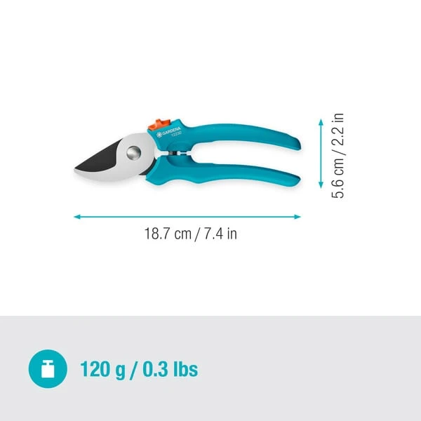 Die GARDENA Gartenschere EasyCut eignet sich zum sauberen, exakten Schneiden von jungen Trieben, frischem Holz und grünen Pflanzen, ideal z.B. für Schnittblumen. Die antihaftbeschichteten Klingen aus Qualitätsstahl liefern einen sauberen und glatten Schnitt. Die spezielle Beschichtung PowerCoating verbessert die Schneidleistung, schützt die Klingen vor Korrosion, und sorgt für eine leichte Reinigung. Die Schere liegt gut in der Hand und ist durch das geringe Gewicht und die ergonomischen Griffe auch für längere Einsätze geeignet. Der Puffer zwischen den Griffen schont außerdem das Handgelenk. Die robusten Griffe werden aus über 45% recyceltem Kunststoff hergestellt. Mit dem Einhand-Sicherheitsverschluss kann die Schere nach der Gartenarbeit einfach geschlossen und sicher aufbewahrt werden. Die Bypass-Gartenschere EasyCut schneidet einen maximalen Astdurchmesser von 20mm und kann zum bequemen Reinigen und Warten vollständig zerlegt werden.Art.-Nr.: 100081822