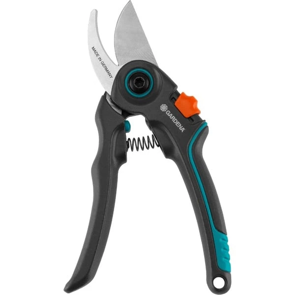 Die GARDENA Gartenschere ExpertCut eignet sich zum sauberen, exakten Schneiden von jungen Trieben, frischem Holz und grünen Pflanzen, ideal z.B. für den Rückschnitt von Obstbäumen. Die Schere liegt gut in der Hand und ist durch das geringe Gewicht und die komfortablen, ergonomischen Griffe mit Weichkomponenten auch hervorragend für längere Einsätze geeignet. Je nach Größe der Hand kann die ExpertCut auf zwei verschiedene Griffweiten eingestellt werden. Auch Schnellschnitte dünnerer Zweige oder Stiele lassen sich mit geringer Öffnungsweite deutlich kraftschonender und angenehmer ausführen. Sie verfügt über präzisionsgeschliffene, durchgehärtete Messer und ein Untermesser aus rostfreiem Edelstahl, die durch einen speziellen Härtungsprozess extrem robust und langlebig sind. Selbst nach unzähligen Einsätzen im Garten liefert die Schere immer wieder präzise und saubere Schnitte. Die Saftrille sorgt dafür, dass die Pflanzensäfte abfließen und nicht die Schneide verkleben. Dank Einhand-Sicherheitsverschluss kann die Schere einfach geschlossen und sicher aufbewahrt werden. Die Bypass-Gartenschere ExpertCut schneidet einen maximalen Astdurchmesser von 22mm.Art.-Nr.: 1687476