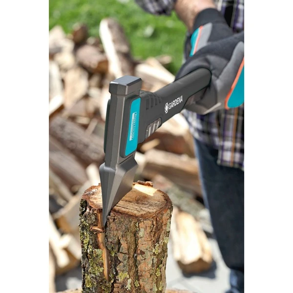 Die Spaltaxt 1600S von GARDENA eignet sich für einfaches und effektives Spalten von Holz. Dank der speziell beschichteten Oberfläche ist der Reibungswiderstand deutlich reduziert und erleichtert das Eindringen in das Holz. Die Form des Axtkopfes ist für das Spalten von mittelgroßem Scheitholz ideal. Der Schlagschutz aus Edelstahl macht die Axt dabei besonders sicher. Eine optimale Balance und Gewichtsverteilung wird durch einen Schwerpunkt nahe am Axtkopf erzielt. Durch die Kombination aus anwendungsangepasstem Axtkopf und optimiertem, glasfaserverstärktem Kunststoffstiel konzentriert sich die wirksame Schlagenergie im Axtkopf und ermöglicht somit eine hohe Spaltkraft. Der Stiel aus glasfaserverstärktem Kunststoff macht diese Axt zu einem robusten Produkt. Durch die Hammerfläche können Keile (bitte keine Stahl-Keile verwenden!) einfach eingetrieben werdenArt.-Nr.: 1252617