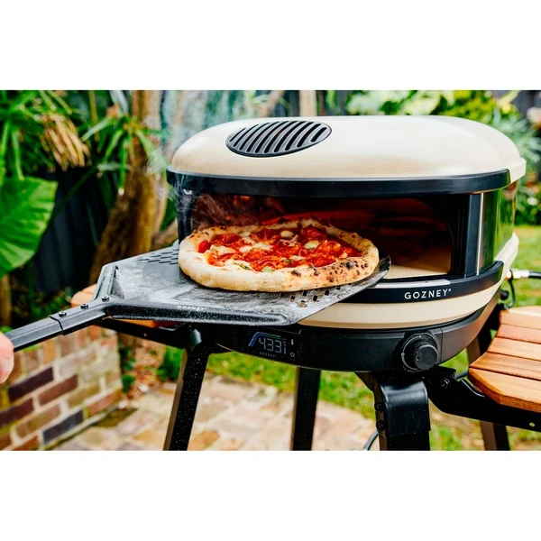 Der fortschrittliche Outdoor-Pizzaofen Arc XL von Gozney bringt berühmtes Design in eine schlanke Form, die innen viel Platz zum Backen bietet. Die innovative seitliche Rollflamme und der revolutionäre Brenner ahmen die Flamme eines traditionellen Holzofens nach und verteilen die Hitze gleichmäßig und konstant, damit weniger Zeit mit dem Wenden von Pizzen verbracht werden muss. Die zweischichtige Space-Age-Isolierung und der 2cm dicke, herausnehmbare Steinboden des Arc XL erreichen schnell eine Temperatur von 500ºC und halten diese auch während des Backens. Die digitale Temperaturanzeige hebt die verschiedenen Pizzazonen hervor, so sieht man genau, wann der Ofen einsatzbereit ist. Mit der intuitiven Flammensteuerung des Arc XL ist es ganz einfach, Pizza in Restaurantqualität in 60 Sekunden oder weniger zuzubereiten. Mit dem Arc XL kann man an einem perfekten Platz im Freien so einfach wie nie zuvor original italienische Pizzen zubereiten.Art.-Nr.: 100061038