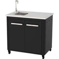 Cozze Outdoorküche 60, Eine Tür, Mit Edelstahl-Tischplatte, Schrank (schwarz/edelstahl, 64cm Breit)