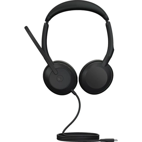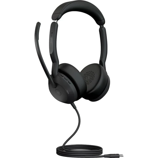 Das Jabra Evolve2 50 ist ein professionelles schnurgebundenes Headset der nächsten Generation mit erstklassigem Sound und außergewöhnlichem Tragekomfort. Es sorgt mit einer aktiven Geräuschunterdrückung (ANC), zwei erstklassigen geräuschunterdrückenden Mikrofonen sowie einem hochmodernen Chipsatz für ein noch klareres Gesprächserlebnis. Per BusyLight LED mit 360-Grad-Sichtbarkeit werden andere Teilnehmer darauf aufmerksam gemacht, wenn man sich in einem Gespräch befindet. Das Evolve2 50 überzeugt dank Jabra SafeTone einschließlich PeakStop mit einem herausragenden Klang und schützt den Träger vor zu hohen Geräuschpegeln. Das einzigartige Überkopfbügel-Design mit perforierten Schaumstoffschichten und innovativen drehbaren Hörmuscheln mit unvergleichlich weichen Polstern stellen sicher, dass man das Headset stundenlang tragen kann ohne ein unangenehmes Drücken festzustellen. Das Evolve2 50 kann mittels USB-C an mobile Geräte, Smartphones, PC und vieles mehr angeschlossen werden. Dank der dualen Konnektivität kann man sich über Bluetooth gleichzeitig mit einem zweiten Gerät (z. B. dem Handy) verbinden. So kann man nahtlos zwischen den Playlists auf dem einen Gerät und Anrufen auf dem anderen Gerät hin- und herwechseln. Da das Evolve2 50 für Microsoft Teams zertifiziert ist, steht dem nächsten Team-Meeting nichts mehr im Wege.Art.-Nr.: 1906929