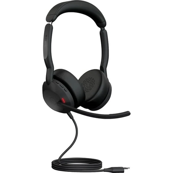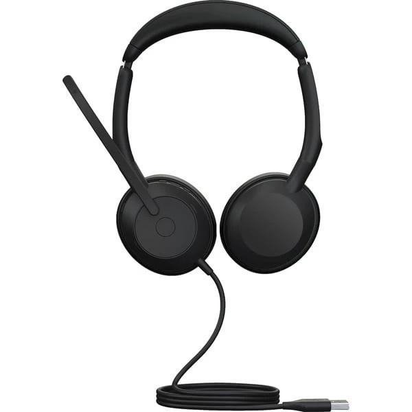 Das Jabra Evolve2 50 ist ein professionelles schnurgebundenes Headset der nächsten Generation mit erstklassigem Sound und außergewöhnlichem Tragekomfort. Es sorgt mit einer aktiven Geräuschunterdrückung (ANC), zwei erstklassigen geräuschunterdrückenden Mikrofonen sowie einem hochmodernen Chipsatz für ein noch klareres Gesprächserlebnis. Per BusyLight LED mit 360-Grad-Sichtbarkeit werden andere Teilnehmer darauf aufmerksam gemacht, wenn man sich in einem Gespräch befindet. Das Evolve2 50 überzeugt dank Jabra SafeTone einschließlich PeakStop mit einem herausragenden Klang und schützt den Träger vor zu hohen Geräuschpegeln. Das einzigartige Überkopfbügel-Design mit perforierten Schaumstoffschichten und innovativen drehbaren Hörmuscheln mit unvergleichlich weichen Polstern stellen sicher, dass man das Headset stundenlang tragen kann ohne ein unangenehmes Drücken festzustellen. Das Evolve2 50 kann mittels USB-A an den PC angeschlossen werden. Dank der dualen Konnektivität kann man sich über Bluetooth gleichzeitig mit einem zweiten Gerät (z. B. dem Handy) verbinden. So kann man nahtlos zwischen den Playlists auf dem einen Gerät und Anrufen auf dem anderen Gerät hin- und herwechseln. Da das Evolve2 50 für Google Meet und Zoom zertifiziert ist, steht dem nächsten Team-Meeting nichts mehr im Wege.Art.-Nr.: 1906926