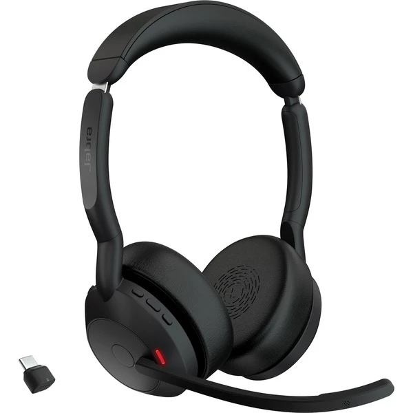 Das Jabra Evolve2 55 ist ein professionelles schnurloses Headset der nächsten Generation mit erstklassigem Sound und außergewöhnlichem Tragekomfort. Es sorgt mit einer aktiven Geräuschunterdrückung (ANC), zwei erstklassigen geräuschunterdrückenden Mikrofonen sowie einem hochmodernen Chipsatz für ein noch klareres Gesprächserlebnis. Per BusyLight LED mit 360-Grad-Sichtbarkeit werden andere Teilnehmer darauf aufmerksam gemacht, wenn man sich in einem Gespräch befindet. Die Stummschaltung lässt sich aktivieren, indem man den Mikrofonarm nach oben dreht. Bewegt man ihn wieder nach unten, wird die Stummschaltung aufgehoben. Das Evolve2 55 überzeugt dank Jabra SafeTone einschließlich PeakStop mit einem herausragenden Klang und schützt den Träger vor zu hohen Geräuschpegeln. Das einzigartige Überkopfbügel-Design mit ultraweichem perforiertem druckminimierendem Schaumstoff und innovativen drehbaren Hörmuscheln mit unvergleichlich weichem Polster stellt sicher, dass man das Headset stundenlang tragen kann ohne ein unangenehmes Drücken festzustellen. Einmal aufgeladen, hält das Evolve2 55 bis zu 16 Stunden (ohne ANC) Gesprächszeit aus und kann mittels Bluetooth-Adapter Link380c an mobile Geräte, Smartphones, PC und vieles mehr angeschlossen werden. Dank der dualen Konnektivität kann man sich über Bluetooth gleichzeitig mit einem zweiten Gerät (z. B. dem Handy) verbinden. So kann man nahtlos zwischen den Playlists auf dem einen Gerät und Anrufen auf dem anderen Gerät hin- und herwechseln. Da das Evolve2 55 für Microsoft Teams zertifiziert ist, steht dem nächsten Team-Meeting nichts mehr im Wege.Art.-Nr.: 1906906
