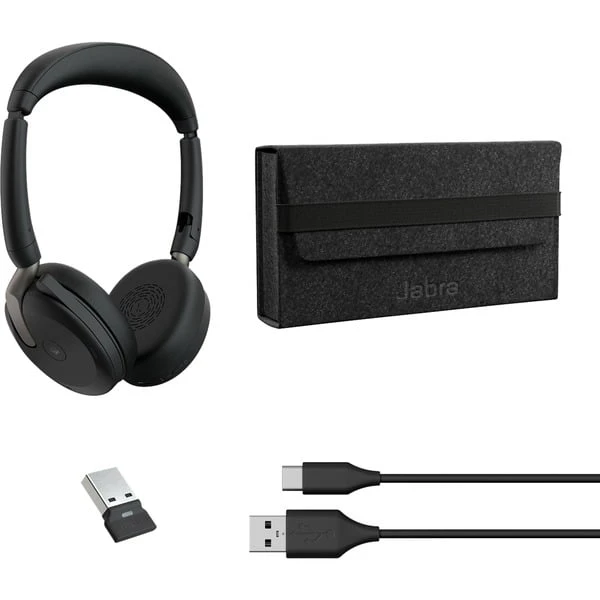 Das Jabra Evolve2 65 Flex ist ein professionelles schnurloses Headset der nächsten Generation mit erstklassigem Sound und außergewöhnlichem Tragekomfort. Dank des bahnbrechenden klappbaren Designs passt es einfach in jede Tasche und erlaubt flexibles Arbeiten unterwegs. Es sorgt mit einer aktiven Geräuschunterdrückung (Hybrid ANC), zwei erstklassigen geräuschunterdrückenden Mikrofonen sowie einem hochmodernen Chipsatz für ein noch klareres Gesprächserlebnis und blendet störende Geräusche einfach aus. Die Ohrkissen aus Memory-Schaumstoff schirmen Geräusche aus dem Umfeld zusätzlich ab, sodass man selbst im größten Trubel ungestört die To-do-Liste abarbeiten kann. Die Stummschaltung lässt sich aktivieren, indem man den Mikrofonarm nach oben dreht. Bewegt man ihn wieder nach unten, wird die Stummschaltung aufgehoben. Per BusyLight LED mit 360-Grad-Sichtbarkeit werden andere Teilnehmer darauf aufmerksam gemacht, wenn man sich in einem Gespräch befindet. Das Evolve2 65 Flex überzeugt dank Jabra SafeTone einschließlich PeakStop mit einem herausragenden Klang und schützt den Träger vor zu hohen Geräuschpegeln. Das einzigartige Überkopfbügel-Design mit ultraweichem perforiertem druckminimierendem Schaumstoff und innovativen drehbaren Hörmuscheln mit unvergleichlich weichem Polster stellt sicher, dass man das Headset stundenlang tragen kann ohne ein unangenehmes Drücken festzustellen. Einmal aufgeladen, hält das Evolve2 65 Flex bis zu 20 Stunden (ohne ANC) Gesprächszeit aus und kann mittels Bluetooth-Adapter Link380a an den PC angeschlossen werden. Dank der dualen Konnektivität kann man sich über Bluetooth gleichzeitig mit einem zweiten Gerät (z. B. dem Handy) verbinden. So kann man nahtlos zwischen den Playlists auf dem einen Gerät und Anrufen auf dem anderen Gerät hin- und herwechseln. Da das Evolve2 65 Flex für Microsoft Teams zertifiziert ist, steht dem nächsten Team-Meeting nichts mehr im Wege.Art.-Nr.: 1906935