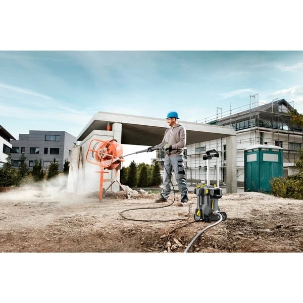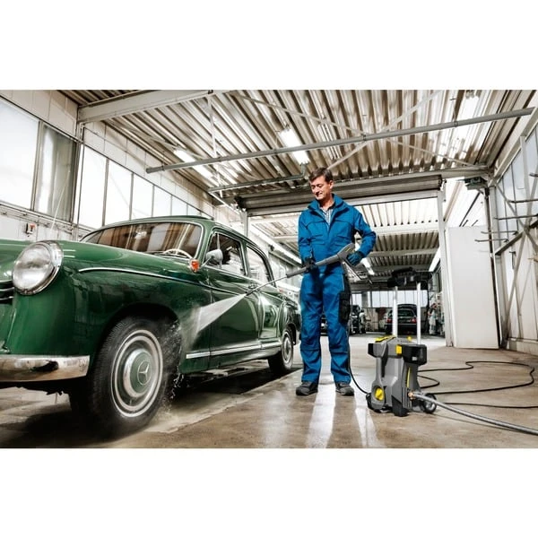 Der portable Hochdruckreiniger Kärcher HD 5/11 P Plus besticht durch kompakte Bauweise, geringes Gewicht und hervorragende Mobilität. Im Lieferumfang enthalten ist ein Dreckfräser, mit dem sich hartnäckige Verschmutzungen schnell beseitigen lassen. Der HD 5/11 P Plus bietet eine zuverlässige 3-Kolben-Axialpumpe mit Messing-Zylinderkopf. Die EASY!Force-Hochdruckpistole nutzt die Rückstoßkraft des Hochdruckstrahls, um die Haltekraft auf null zu reduzieren, und die EASY!Lock-Schnellverschlüsse ermöglichen ein schnelleres Handling ohne Einbußen bei Robustheit und Langlebigkeit. Das automatische Druckentlastungssystem schützt die Komponenten, erhöht die Lebensdauer, senkt die Reparatur- und Wartungskosten und verringert die Abzugskräfte an der EASY!Force-Hochdruckpistole. Ein zusätzlicher Tragegriff sowie der ausziehbare Schubbügel erleichtern den Transport und die Lagerung auf kleinem Raum des für den stehenden und liegenden Betrieb geeigneten HD 5/11 P Plus. Die praktische Zubehöraufbewahrung umfasst ein Düsenfach, eine Verschraubung für Flächenreiniger sowie ein praktisches Gummiband zur sicheren Befestigung des zehn Meter langen Hochdruckschlauchs.Art.-Nr.: 1413175