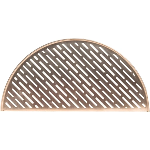 Die halbrunde lasergeschnittene Edelstahlfläche KJ-HSSCGFV ist Teil des patentierten, flexiblen Kochsystems „Divide & Conquer“ von Kamado. Revolutionär sind die unterschiedlichen Ebenen und die halben Grillflächen: So wird Platz geschaffen, um zeitgleich verschiedene Zutaten bei unterschiedlichen Temperaturen individuell zubereiten zu können. Die halbrunde lasergeschnittene Edelstahlfläche KJ-HSSCGFV in doppelter Dicke ist extrem glatt und damit ideal, um Gemüse und zarten Fisch gleichmäßig zu garen. Sie passt für den für Kamado Joe Classic mit Ø 46cm.Art.-Nr.: 1528422