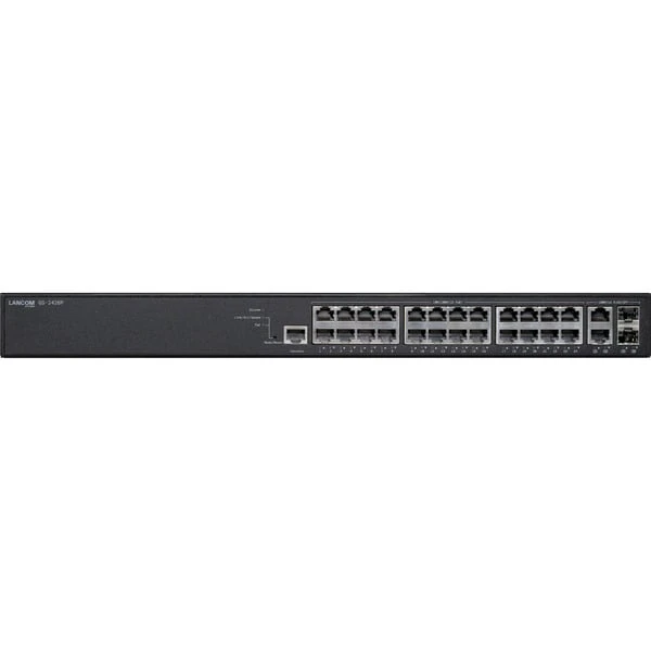 Der LANCOM GS-2426P ist die effiziente LAN-seitige Grundlage für kleine und mittelgroße Unternehmen (KMU), die eine zuverlässige Layer-2-Switching-Lösung inklusive Power over Ethernet benötigen. Die Layer-2-Funktionalität mit VLAN-Unterstützung, QoS und erweiterten Sicherheitsmechanismen optimiert den Datenverkehr und schützt das Netzwerk vor unautorisiertem Zugriff. Mit 24 PoE+-fähigen Gigabit Ethernet-Ports (IEEE 802.3af/at) und einer PoE-Gesamtleistung von 185 Watt versorgt der Access Switch angeschlossene Endgeräte wie IP-Kameras und Access Points mit Strom – ganz ohne zusätzliche Netzteile oder aufwendige Verkabelung. Zwei zusätzliche Combo-Ports (TP/SFP) ermöglichen eine flexible Netzwerkerweiterung über Glasfaser- oder Kupferverbindungen. Für eine einfache Verwaltung stehen eine webbasierte GUI, eine CLI oder die LANCOM Management Cloud (LMC) zur Verfügung – ideal für zentrale Gerätekonfigurationen und automatisierte Rollouts.