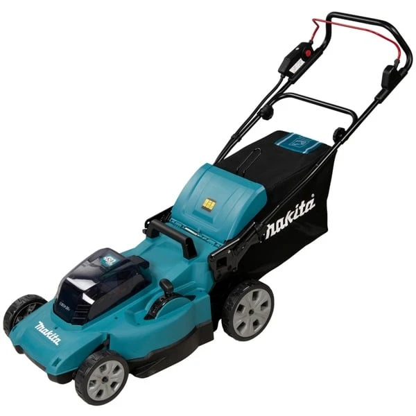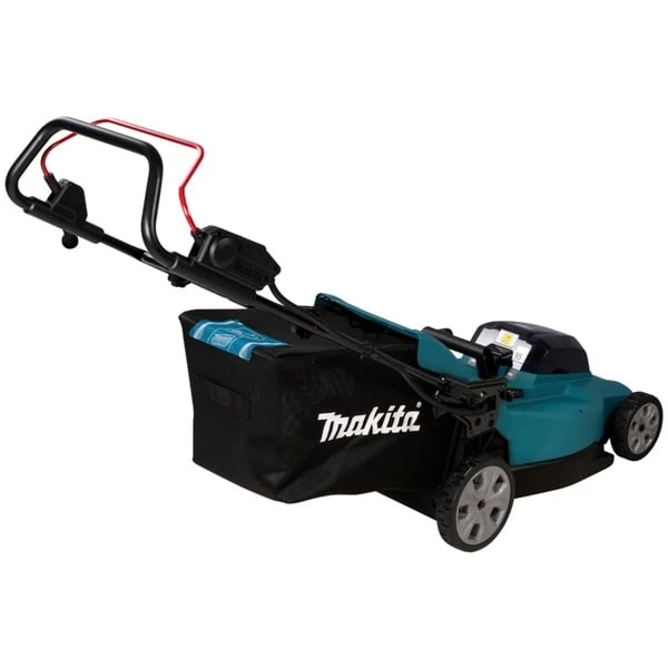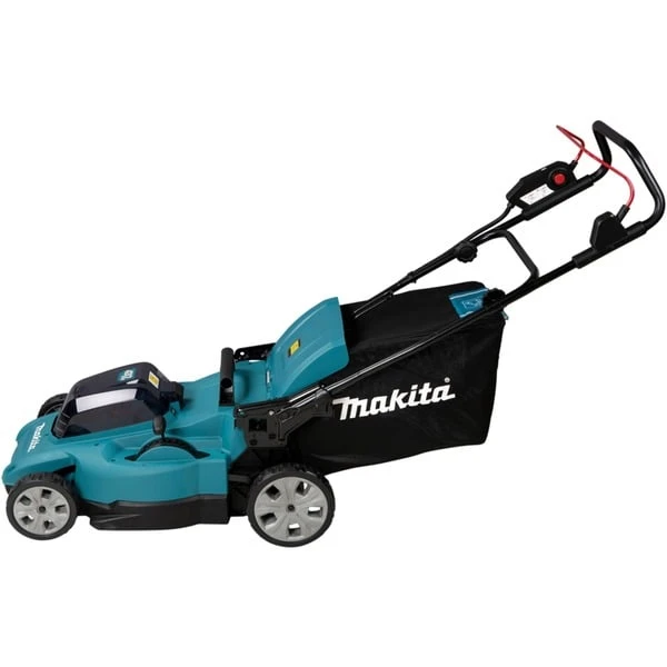 Der Makita Akku-Rasenmäher DLM480CT2 bietet eine Schnittbreite von 48cm und eignet sich für mittelgroße Rasenflächen. Der geräuscharme Mäher verfügt über einen Grasfangsack mit Füllstandsanzeige, Hard-Top + Bodenplatte und einen umklappbaren Holm. Die Bügelgriffhöhe kann in zwei Stufen eingestellt werden. Die Akku-Ladestandanzeige ist gut sichtbar direkt am Führungsholm angebracht. Die Sanftanlauf-Funktion des DLM480CT2 reduziert Anlaufstöße auf ein Minimum und sorgt für ein ruckfreies Anlaufen des bürstenlosen, wartungsfreien und langlebigen Motors. XPT (Extreme Protection Technology) schützt den Mäher gegen Staub und Spritzwasser, auch unter harten Bedingungen.Art.-Nr.: 100054861