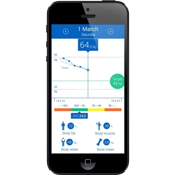 | Funktionen | Abschaltautomatik, Einschaltautomatik, Body Mass Index (BMI) Messung, Integrierte Kalorienbedarfsanalyse | ||
