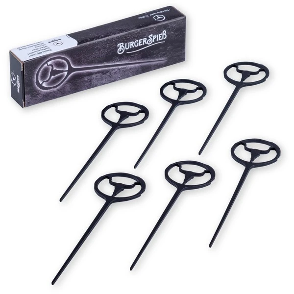 Das 6er Set BurgerSpieße ist der ideale Helfer für alle Burger-Fans. Aufgespießt kann der Burger perfekt angerichtet werden, kein Verrutschen mehr auf dem Teller! Der säbelförmige BurgerSpieß hält jeden Burger formschön zusammen. Die Spieße sind auch für das Anrichten von Fingerfood geeignet, für kreative Einsätze auf dem Grill. Der Abwasch nach dem Essen gestaltet sich sehr einfach. Man kann die BurgerSpieße nach Benutzung kurz im Wasser einweichen, dann lassen sich die Reste ganz einfach abwischen. Noch einfacher geht es in der Spülmaschine, denn die Kunststoff-Spieße sind spülmaschinenfest.Art.-Nr.: 1731903