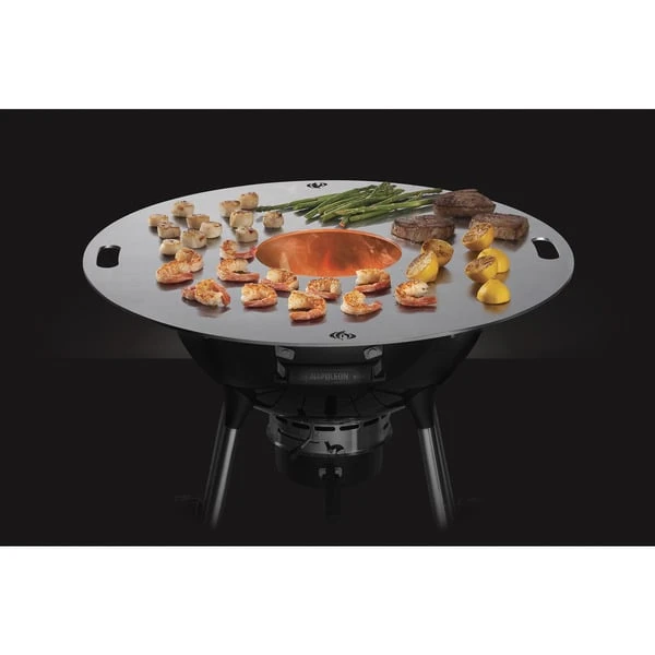 Die Feuerplatte 56099 von Napoleon verwandelt den Holzkohle-Grill in eine Gartenparty mit Freunden und Familie. Mit einem Durchmesser von 75cm passt sie auf die 18″- und 22″- (46cm und 56cm) Holzkohlegrills. Die warmgewalzte Stahlplatte mit einer Dicke von 5mm bietet eine perfekte Wärmespeicherung. Aufgrund ihrer Größe gibt es mehrere unterschiedliche Hitzezonen, so dass Fisch, Fleisch und Gemüse perfekt gegrillt und warm gehalten werden können.Art.-Nr.: 100102397