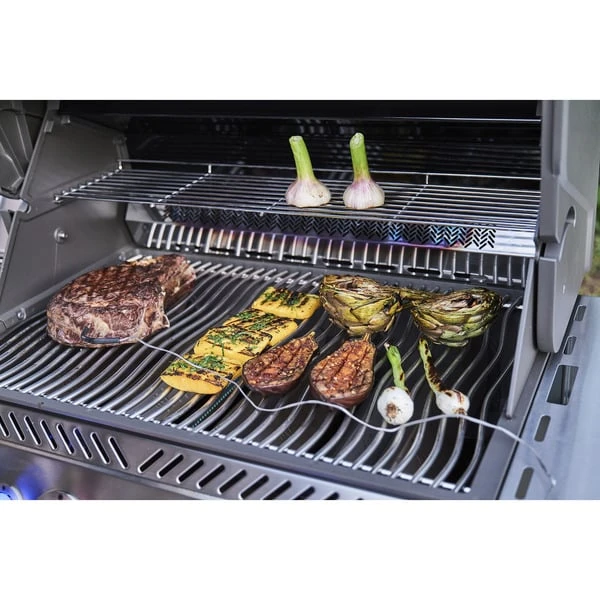 Der Napoleon Prestige 500 vereint unter seiner Haube alles, was sich ein Grillmeister vorstellen kann. Mit vier Hauptbrennern, einem größeren Infrarot-Heckbrenner für Gerichte vom Drehspieß und dem größeren Infrarot SIZZLE ZONE Seitenbrenner für perfekte Steaks ermöglicht er vielfältigste Formen der Zubereitung. Mit der großzügigen Hauptgrillfläche plus Warmhalterost lassen sich Familie, Freunde, Nachbarn und der Fußballclub verköstigen. Der abnehmbare Warmhalterost lässt sich im Grill verstauen, während ein verbessertes internes Aufbewahrungssystem im Korpus für mehr Ordnung sorgt. Praktisch und clever konstruiert sind auch die Seitenablagen: Links verbirgt sich die Sizzle Zone als Seitenbrenner. Die großzügigen Seitenablagen bieten außerdem extra Zubereitungsfläche sowie praktische Besteckhaken. Die ergonomischen Drehregler besitzen eine angenehme Haptik und sorgen für eine präzise Temperatursteuerung. Die LED-Regler bieten nicht nur eine Leuchtfunktion, sondern leuchten außerdem dank der Funktion SafetyGlow in rot für einen zusätzlichen Hinweis, dass die Brenner eingeschaltet sind. Das Napoleon-typische Wellen-Design der WAVE Grillroste sorgt für eine gleichmäßigere Hitzeverteilung und hält auch kleineres Grillgut sicher auf dem Rost. Edelstahl-Flammenschutzeinsätze bilden eine extra Oberfläche und werden so zu Aromaschienen, die dem Grillgut eine besonders aromatische Grillnote verleihen. Der Infrarot-Heckbrenner eignet sich hervorragend zum Grillen großer Bratenstücke und ist natürlich ideal für Drehspieß-Gerichte geeignet (Drehspieß nicht im Lieferumfang enthalten). Mit der separat erhältlichen Räucherpfeife kann man den Gasgrill rasch in einen Smoker verwandeln, der für ein besonderes Aroma sorgt, einfach die Räucherpfeife mit den Lieblings-Räucherchips füllen und über einen entzündeten Brenner legen. Oder man benutzt den 2 in 1 Holzkohleeinsatz mit integriertem Räucherbereich. Die Kohlen werden rasch vom Gasbrenner befeuert und sorgen für das beliebte Räucherfeeling beim Grillen.Art.-Nr.: 100097412