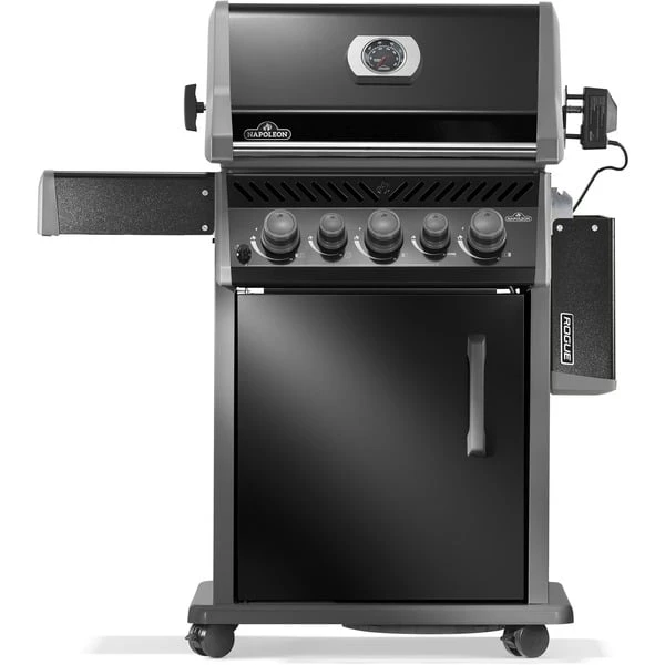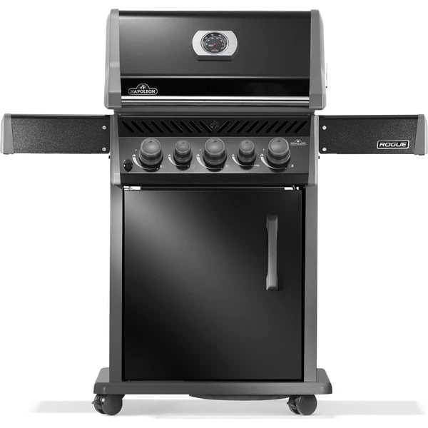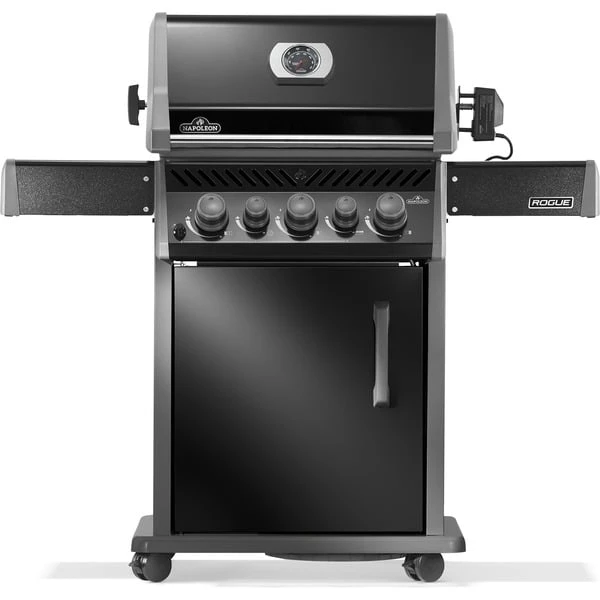 Der Gasgrill Rogue 425 RSB von Napoleon mit altbewährter Technologie aus der Prestige-Serie und kompakter Bauweise in vollschwarzer Optik ist ein wahrer Allrounder, der mit seiner Top-Grillfläche überzeugt. Sie bietet mit 60 x 45cm Platz für ein vollständiges Grillmenü. Außerdem verfügt er nicht nur über einen Seitenkocher, sondern auch über einen Infrarot-Heckbrenner. Dieser sorgt in Verbindung mit dem höheren Deckel dafür, dass die Grills zu wahren Rotisserie-Spezialisten werden. Der Rogue 425 RSB wird komplett mit einem Drehspieß-Set inklusive Motor geliefert. Man kann also direkt „losgrillen“. Ob ein ganzes Hähnchen oder ein Spanferkel, der Rogue 425 RSB liefert ein perfektes Grillergebnis mit herrlicher Kruste. Die porzellan-emaillierten WAVE Gussroste speichern höchst effizient die Hitze der drei massiven Edelstahl-Brenner und geben diese an das Grillgut weiter. So kann sich das Branding immer sehen lassen. Sein stabiles, leicht zu reinigendes Aluminiumguss-Brennergehäuse, die Brenner aus hochwertigem Edelstahl, das zuverlässige JETFIRE Zündsystem und das einzigartige Hitzeverteilersystem machen den Rogue 425 RSB zu einem starken Begleiter auf jeder Grillparty. Eine Menge Stauraum verbirgt sich hinter der schwarzen Tür des Unterschranks. Das im schwarzen Deckel integrierte ACCU PROBE Thermometer misst exakt die Temperatur unter dem Grilldeckel, ohne diesen öffnen zu müssen. Dank der Seitenablagen, die sich im Handumdrehen herunterklappen lassen, kann man den Rogue besonders platzsparend unterbringen, auch auf dem kleinsten Balkon.Art.-Nr.: 100097346