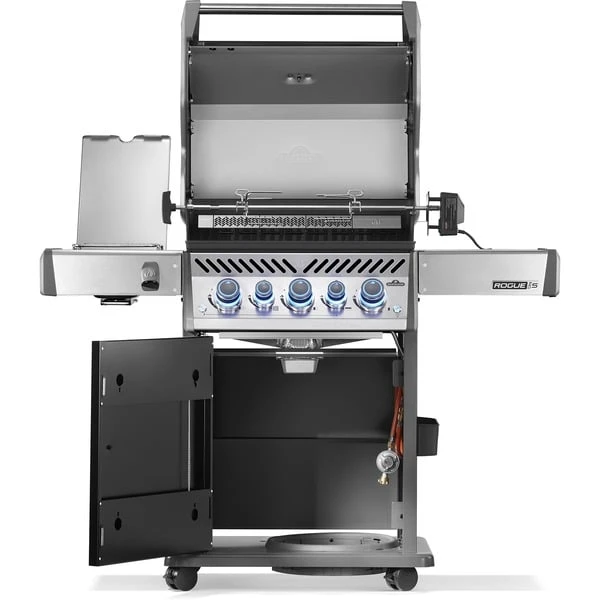 Der Napoleon Rogue PRO-S 425 setzt den mit der SIZZLE ZONE ausgestatteten Rogue Modellen die Krone auf. Der Rogue PRO-S 425 hat den großen SIZZLE ZONE Infrarot-Seitenbrenner an Board, der hohe Temperaturen bis zu 800°C erreichen kann. Das heizt den Steaks ordentlich ein und schafft unverwechselbare Röstaromen. Auch für Wok Gerichte ist dieser Powerbrenner eine wahre Bereicherung. Die SIZZLE ZONE verfügt über einen Edelstahl WAVE Grillrost. Die Edelstahlausführung überzeugt mit einer robusten und langlebigen Qualität und erschwert gleichzeitig, dass kleineres Grillgut durch den Rost fällt. Zusätzlich sind auch ein Infrarot-Heckbrenner und ein Grillspieß inkl. Motor mit an Bord. Das sorgt in Verbindung mit dem höheren Deckel dafür, dass der Grill als echter Rotisserie-Spezialist überzeugt: Ob ganzes Hähnchen oder Spanferkel, ein perfektes Grillergebnis mit herrlicher Kruste ist sichergestellt! Die porzellan-emaillierten WAVE Gussroste speichern höchst effizient die Hitze der drei massiven Edelstahl-Brenner und geben diese an das Grillgut weiter. So kann sich das Branding immer sehen lassen. Der Warmhalterost aus Edelstahl bietet zusätzliche Grill- und Warmhaltefläche. Das stabiles Aluminium-Druckguss Brennergehäuse, die Brenner aus hochwertigem Edelstahl und das einzigartige Hitzeverteilersystem machen den Rogue PRO-S zu einem starken Begleiter auf jeder Grillparty. Als weitere Highlights verfügt der Napoleon Rogue PRO-S 425 zusätzlich über LED-beleuchtete SAFETY GLOW Drehregler und einen praktischen Flaschenöffner am Seitentisch. So ist man auch in den Abendstunden für jede Grillparty bestens ausgerüstet.Art.-Nr.: 100097372