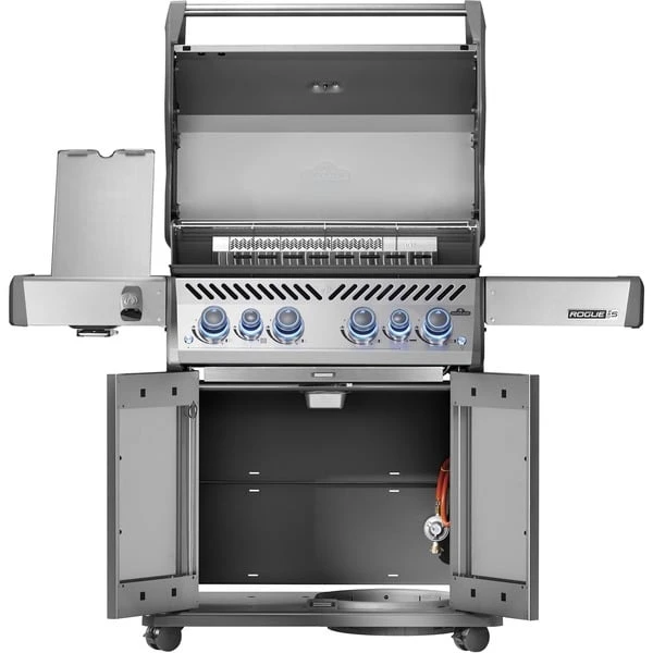 Der Napoleon Rogue PRO-S 525 setzt den mit der SIZZLE ZONE ausgestatteten Rogue Modellen die Krone auf. Der Rogue PRO-S 525 hat den großen SIZZLE ZONE Infrarot-Seitenbrenner an Board, der hohe Temperaturen bis zu 800°C erreichen kann. Das heizt den Steaks ordentlich ein und schafft unverwechselbare Röstaromen. Auch für Wok Gerichte ist dieser Powerbrenner eine wahre Bereicherung. Die SIZZLE ZONE verfügt über einen Edelstahl WAVE Grillrost. Die Edelstahlausführung überzeugt mit einer robusten und langlebigen Qualität und erschwert gleichzeitig, dass kleineres Grillgut durch den Rost fällt. Zusätzlich ist auch ein Infrarot-Heckbrenner mit an Bord. Dieser sorgt in Verbindung mit dem höheren Deckel dafür, dass der Grill als echter Rotisserie-Spezialist überzeugt: Ob ganzes Hähnchen oder Spanferkel, ein perfektes Grillergebnis mit herrlicher Kruste ist sichergestellt! Der Warmhalterost aus Edelstahl bietet zusätzliche Grill- und Warmhaltefläche. Das stabiles Aluminium-Druckguss Brennergehäuse, die Brenner aus hochwertigem Edelstahl und das einzigartige Hitzeverteilersystem machen den Rogue PRO-S zu einem starken Begleiter auf jeder Grillparty. Als weitere Highlights verfügt der Napoleon Rogue PRO-S 525 zusätzlich über LED-beleuchtete SAFETY GLOW Drehregler und einen praktischen Flaschenöffner am Seitentisch. So ist man auch in den Abendstunden für jede Grillparty bestens ausgerüstet.Art.-Nr.: 100097389