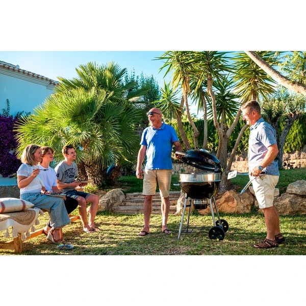 Der flexible 22″ Kugelgrill PRO22K-LEG-3 von Napoleon ist ideal für Holzkohleliebhaber, zum unkomplizierten Grillen, langsamen Garen oder Smoken mit den Lieblings-Räucherchips und -stücken. Mit den steuerbaren Lüftungsschlitzen an der Ober- und Unterseite des Grills ist es ganz einfach, die Wärme über den Luftstrom zu kontrollieren. Das integrierte ACCU-PROBE Thermometer hilft, die perfekte Temperatur aufrechtzuerhalten und verfügt sogar über eine Skala, die den idealen Räucher- und Grillbereich für die Mahlzeit zeigt. Das Vortex-Wärmemanagementsystem verbessert die Konvektion innerhalb des Grills, für ein besseres Anbraten und Smoken sowie eine effizientere Nutzung des Brennstoffs. Die Roste sind aus Gusseisen und können für bequemes Grillen in drei verschiedenen Höhen eingestellt werden. Dank den klappbaren Rosten kann man ganz einfach Holzkohle nachfüllen, die Wasserpfannen wieder auffüllen oder Räucherchips und -stücke hinzufügen. Der Erweiterungsring aus Edelstahl ist für Drehspießgerichte geeignet und verfügt über Türen, die die Öffnungen für den Spieß abdecken. Integrierte Türen für Temperaturfühler sorgen dafür, dass der Garvorgang genau gesteuert werden kann. Die überaus stabile porzellanbeschichtete Stahlkonstruktion ist gegen Verschleiß gewappnet. Durch den klappbaren Deckel hat man Zugriff auf die gesamte Grillfläche. Der Deckel mit dem integrierten ACCU PROBE Thermometer bietet eine Deckelaufhängung und einen Cool Touch-Griff, um die Hände beim Grillen vor der Hitze zu schützen. Die nochmals verbesserten Standbeine sorgen für höchste Stabilität und eine erhöhte Grillfläche. Mit den wetterbeständigen Rädern findet der Grill problemlos seinen Platz im Garten.Art.-Nr.: 100027599