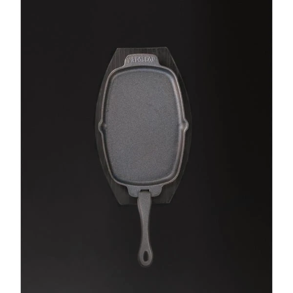 Die Napoleon PRO Gusseisen-Grill- und Bratpfanne 56008 ist das perfekte Modell für Einsteiger und Profis. Ob am Grillrost, am Seitenbrenner oder am Küchenherd, diese Gusseisen-Pfanne macht überall eine perfekte Figur. Während des Grillens oder Bratens wird einfach der Griff ausgehängt. So bleibt dieser schön kühl und das Pfannengericht kann professionell samt Untersetzer serviert werden. Professionell eingebranntes Gusseisen überdauert Generationen. Diese Grillpfanne kann man auch ganz einfach selbst einbrennen: Dazu einfach waschen, mit einer dünnen Schicht pflanzlichen Fetts beschichten und bei ca 180°C in einen eine Stunde vorgeheizten Grill oder Ofen stellen. Dieser Vorgang sorgt für eine nicht-haftende Oberfläche, sodass man jahrelang Freude an der Gusseisen-Pfanne hat. Art.-Nr.: 1404520