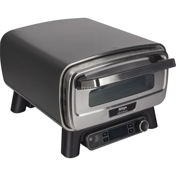 Der 4-in-1 Artisan Outdoor-Elektro-Pizzaofen und Heißluftfritteuse MO201EU von Ninja zaubert in weniger als 3 Minuten knusprige Pizzen, mit gleichmäßig gebräunter Kruste und perfekt geschmolzenem Käse, ganz einfach auf Knopfdruck. Das Multitalent für die Outdoor-Küche bietet fünf Funktionen: Pizza, Backen, Air Fry und Teig gehen lassen. Bei der Pizza-Funktion kann aus fünf verschiedenen Einstellungen gewählt werden: Artisan (Bissfeste, fluffige Kruste mit knusprigen Blasen), Thin Crust (Dünne, lange Pizza mit knusprigem Rand), New York Style (Breite, faltbare Kruste mit leichter Bräunung), Pan Chicago Style (Pfannenpizza mit dicker, bissfester Kruste) und Custom (Benutzerdefiniert, für eigene Gourmet-Kreationen). Die mitgelieferte Pizzaschale ermöglicht einfaches Einschieben und Entnehmen von Broten und Pizzen. So lassen sich komplette Mahlzeiten unter freiem Himmel zubereiten, die Beilagen garen im Ninja Pizzaofen zur gleichen Zeit wie das Hauptgericht, die Burger auf dem Grill, während die Focaccia im Ofen backt oder Beilagen heißluft-frittiert werden. Durch das Chef’s View-Fenster und die Innenbeleuchtung, die auf Knopfdruck aktiviert werden kann, können die Gerichte jederzeit im Blick behalten werden. Dank elektrischer Hitze kann die Temperatur präzise bis 370°C eingestellt werden, mit einfach zu bedienenden digitalen Bedienelementen. Kein Holz, kein Gas, keine Asche, dieser Pizzaofen ist perfekt für den Balkon und die Terrasse. Der 4-in-1 Artisan Outdoor-Elektro-Pizzaofen und Heißluftfritteuse bewältigt auch große Mengen für viele Gäste, er bietet Platz für eine 30cm-Pizza oder Backform, sechs Hähnchenbrüste, 1,3kg Chicken Wings / Pommes oder ein großes Sauerteigbrot. Der Schlüssel zu einem perfekten Brot oder einer perfekten Pizza liegt darin, dass der Teig richtig aufgegangen ist. Mit der Funktion zum Gehenlassen bei 30°C wird der Teig auf die optimale Temperatur gebracht, um ein professionelles Backergebnis zu erzielen. Der elektrische Pizza- und Brotbackofen ist wetterbeständig und kann draußen gelagert werden. Wir empfehlen die Ninja Artisan Ofenabdeckung, um den Ofen vor Witterungseinflüssen zu schützen.Art.-Nr.: 100140568