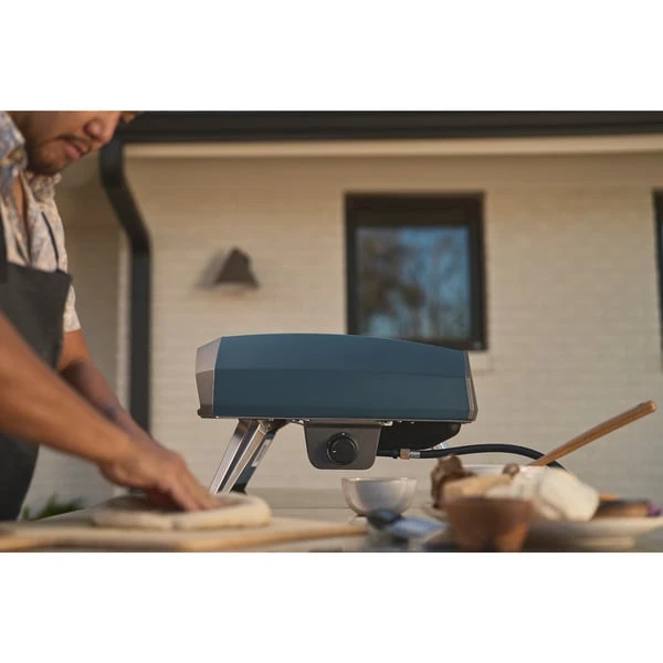 Der Ooni Koda 2 in der Farbe Slate Blue (schieferblau) ist ein tragbarer gasbetriebener Pizzaofen / -grill für den Außenbereich mit einer Backfläche von 36cm. Die Ooni G2 Gas Technology erzeugt eine einzigartige konische Flamme, ideal für eine konstante Temperatur des Pizzasteins. Mit den präzisen Reglern lässt sich die Temperatur von nur 190°C bis hin zu 500°C ganz nach Wunsch einstellen, niedrige Hitze für eine saftige Grandma-Style-Pizza in der Pfanne oder volle Temperatur für authentische neapolitanische Pizza in nur 60 Sekunden, feurig gegrillte Chicken Wings oder perfekt gebratene Steaks. Der Ooni Koda 2 ist in Sekundenschnelle einsatzbereit. Man braucht nur die scharnierten Beine ausklappen, den Pizzastein einsetzen und den Koda 2 an die Gasflasche anschließen. Das Design des Ooni Koda 2 wurde für optimale Geschwindigkeit, Komfort und Benutzerfreundlichkeit entwickelt. Die integrierte 5cm große Edelstahl-Ablage ermöglicht es, die Pizza oder Pfannen kurz abzusetzen, zu inspizieren und zu drehen. Mit dem Koda 2 muss man sich nicht zwischen portabel und leistungsstark entscheiden, man kann ihn sowohl im Garten als auch unterwegs nutzen. Das isolierte Stahlgehäuse und der starke Pizzastein sorgen für eine optimale Wärmedämmung, so dass man innerhalb von 20 Minuten mit der Zubereitung loslegen kann. So kann man Pizza nach neapolitanischer Art backen, aber auch frisches Brot, gebratenen Fisch, Gemüse oder Steaks. Der Koda 2 ist mit dem Bluetooth-fähigen Ooni Connect Digital Temperatur-Hub kompatibel (separat erhältlich), mit dem sich die Temperaturen im Inneren des Koda 2 überwachen lässt.Art.-Nr.: 100150361