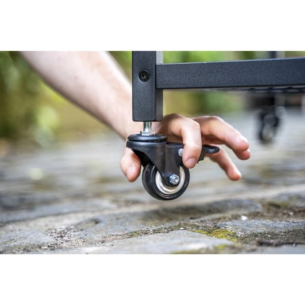 Der Modultisch V2 Large von Ooni bieten die perfekte Oberfläche für den Ooni Pizzaofen samt Zubehör. Alle Pizzaofenmodelle von Ooni passen perfekt auf die obere Arbeitsfläche aus Edelstahl, und die Gasflasche lässt sich einfach in das untere Regal stellen. Alle Ooni Tische bestehen aus robustem pulverbeschichtetem Kohlenstoffstahl. Sie verfügen außerdem über zwei höhenverstellbare Ablagen und integrierte Haken für Ooni Schalen und Zubehörteile. Außerdem halten zwei arretierbare Rollen die Tische an Ort und Stelle. Wird mehr Platz benötigt, lassen sich auch zwei oder mehr Tische miteinander verbinden.Art.-Nr.: 100103961
