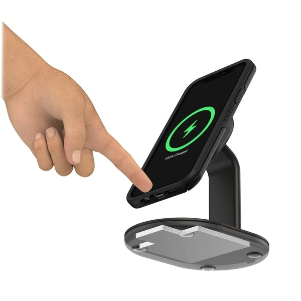 Der elegante, kompakte Otterbox Ladeständer für MagSafe mit kleinem Sockel und magnetischer Befestigung ist die ideale Abstellmöglichkeit für das iPhone zu Hause und im Büro. Wenn man das iPhone an dem kabellosen Ladeständer befestigt, weiß man immer, wo es ist. Oder man stellt den Ständer an einen Ort, an dem man alle Verbindungen im Blick hat. Man interagiert während des Ladevorgangs mit dem Telefon und nimmt es dann mit einer einfachen Drehung vom Ständer ab. Das schlanke Design macht es zu einer idealen Abstellmöglichkeit für das iPhone. Der Otterbox Ladeständer für MagSafe bietet eine sichere Position für das iPhone im Hoch- oder Querformat beim Laden, Streamen und dem Herstellen von Verbindungen. Der einzigartige, im Dunkeln leuchtende Ring beleuchtet die Halterung und erleichtert das Auffinden im Dunkeln. Die rutschfeste, schwere Form bietet Standfestigkeit beim einhändigen Aufsetzen und Abnehmen des iPhones.Art.-Nr.: 1826766